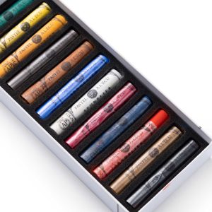 Sennelier utiliza sólo los pigmentos más puros, mezclados con cantidades mínimas de aglutinantes naturales, en una fórmula exclusiva que produce pasteles solubles en agua y resistentes a la luz. El aglutinante es el justo para mantener unido el pigmento mientras los pasteles se forman a mano, se colocan en moldes especiales y se dejan secar al aire. No se utilizan cargas ni arcillas. Los pasteles blandos Sennelier están altamente concentrados y son tan suaves que una pincelada suave proporcionará una línea sólida y potente de color brillante. Los palillos miden 2½” de largo × ½” de diámetro (64 mm × 13 mm). Idea para regalar – Deleite al artista de su vida con un juego de Pasteles Sennelier. Los Pasteles Sennelier están disponibles en una gran variedad de estuches de regalo, desde los económicos sets de media barra hasta sets más completos y especializados.