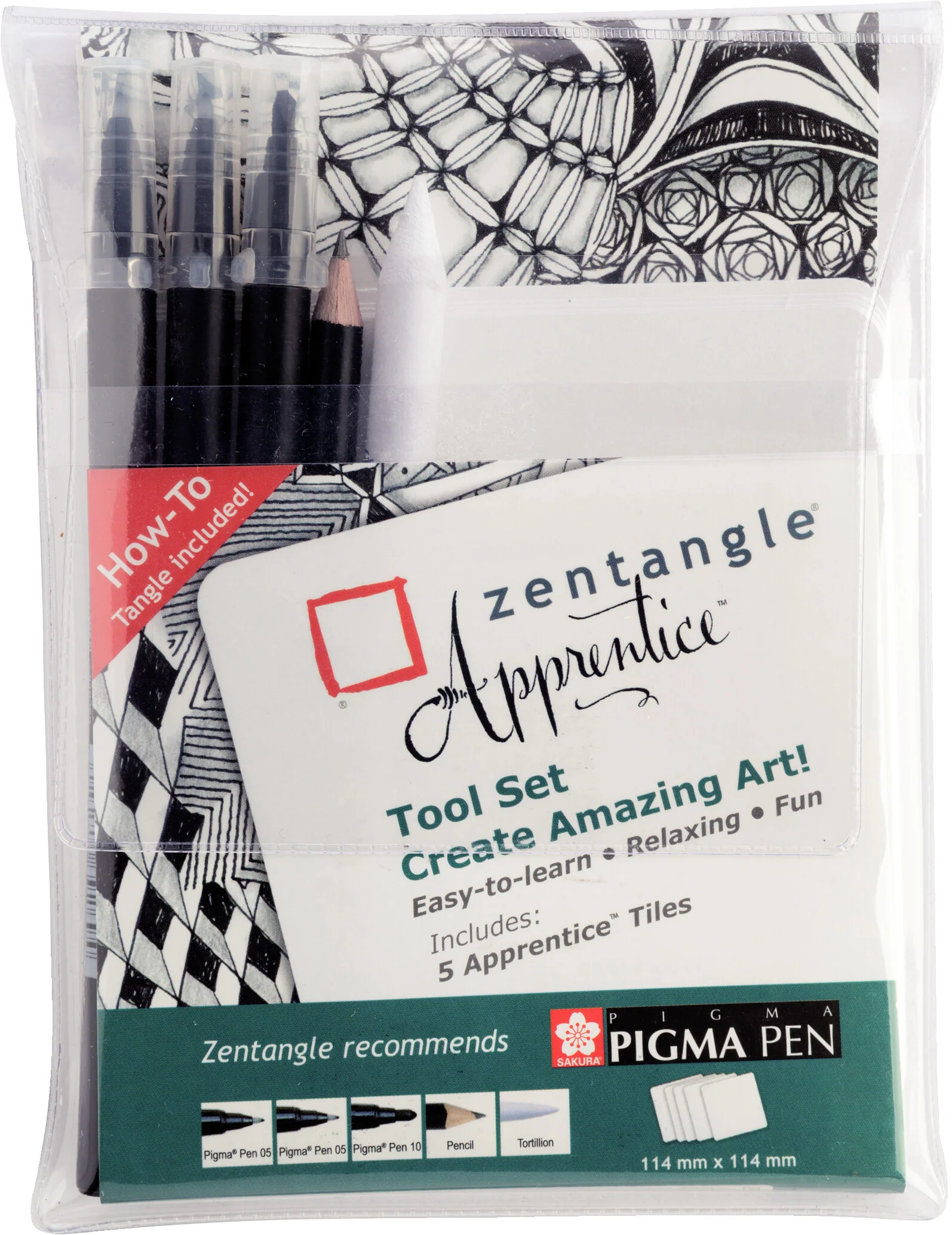 El metodo zentangle es facil de aprender y es una forma relajante y divertida de crear imagenes dibujando patrones estructurados. Este set cuenta con 2 pigma Pen de 05, un pigma Pen de 10, un lápiz y un difumino.
